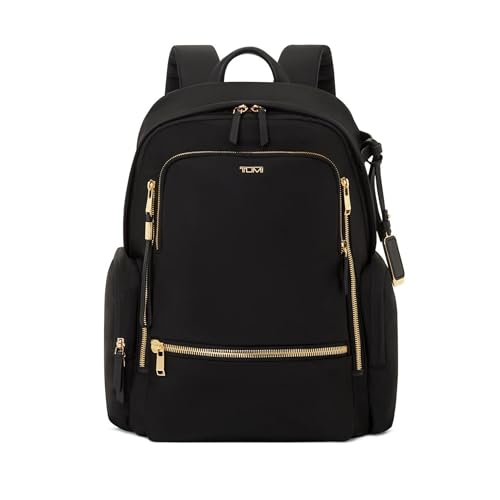 The TUMI Voyageur Celina Backpack is the perfect balance of elegance and functionality for women on the go. Crafted in sleek black with luxurious gold hardware, this versatile backpack is designed to transition seamlessly from the office to international travel.